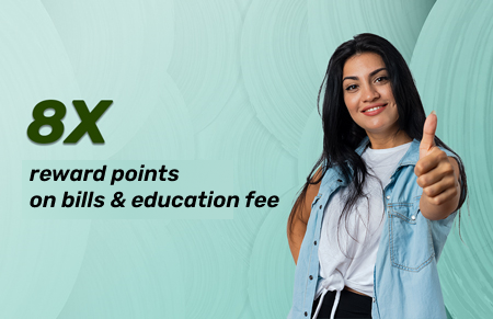 For every ₹400 spent on paying education fees and other bills, earn 8 times the regular reward points.